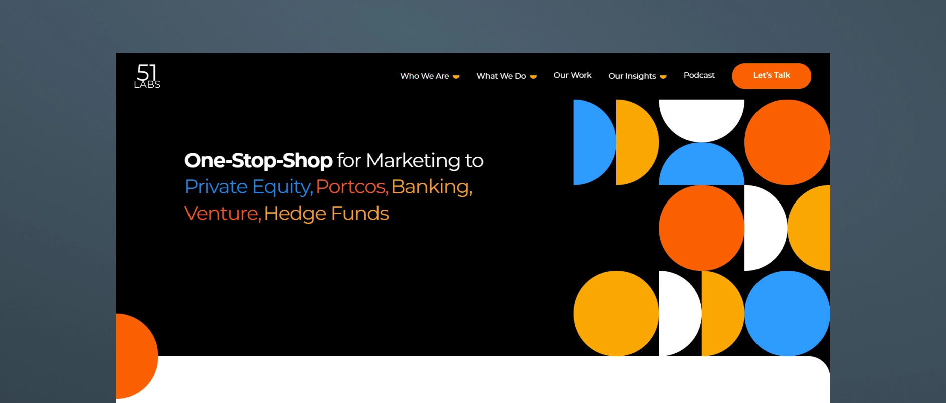 51 Labs is a modern marketing partner focused on private equity, credit, and finance firms. They combine financial-industry fluency with creative execution to deliver branding, websites, video, and content marketing. Their specialty is LinkedIn and video content, making them especially effective for firms seeking consistent visibility, platform + portfolio branding, and active engagement across digital channels.