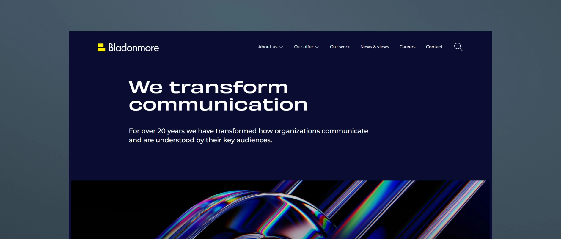 Bladonmore is a global stakeholder-communications agency with 20+ years of experience building brand, investor communications, digital content, film, and sustainability messaging for corporations, investors, family offices, and private-market clients.They combine strategy, creative design, digital execution, editorial, and multimedia to help clients articulate complex business stories.