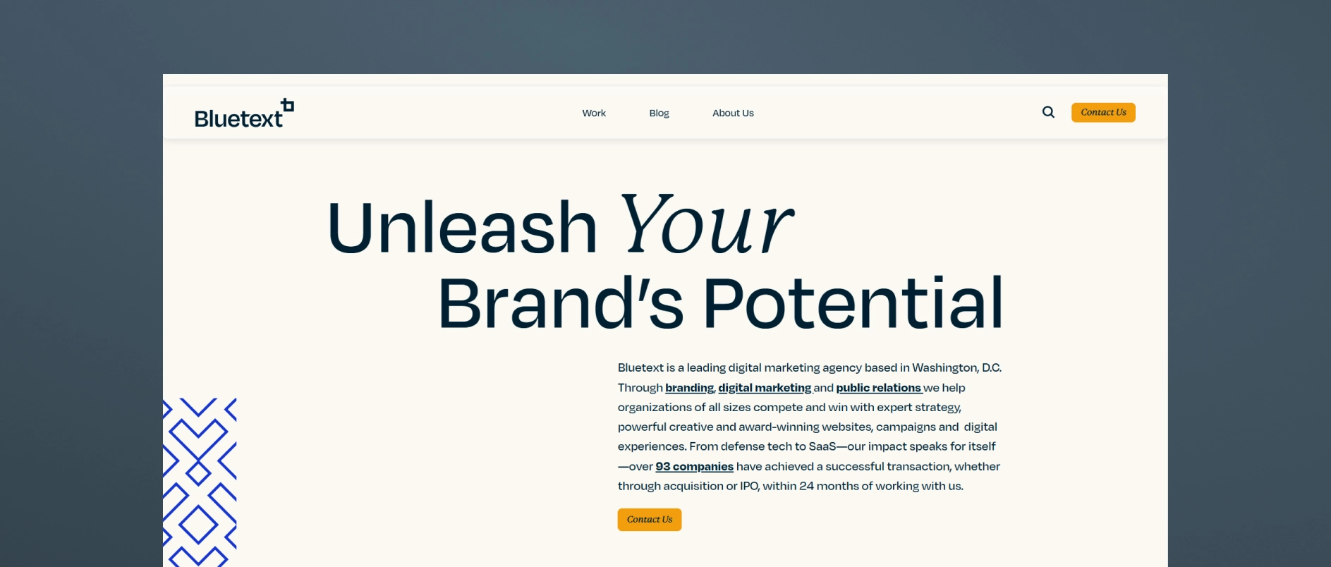 Bluetext is a full-service digital marketing and communications agency based in Washington, D.C., delivering branding, brand-revitalization, website design and development, content and digital marketing, thought-leadership campaigns, SEO, public relations, and demand-generation services.